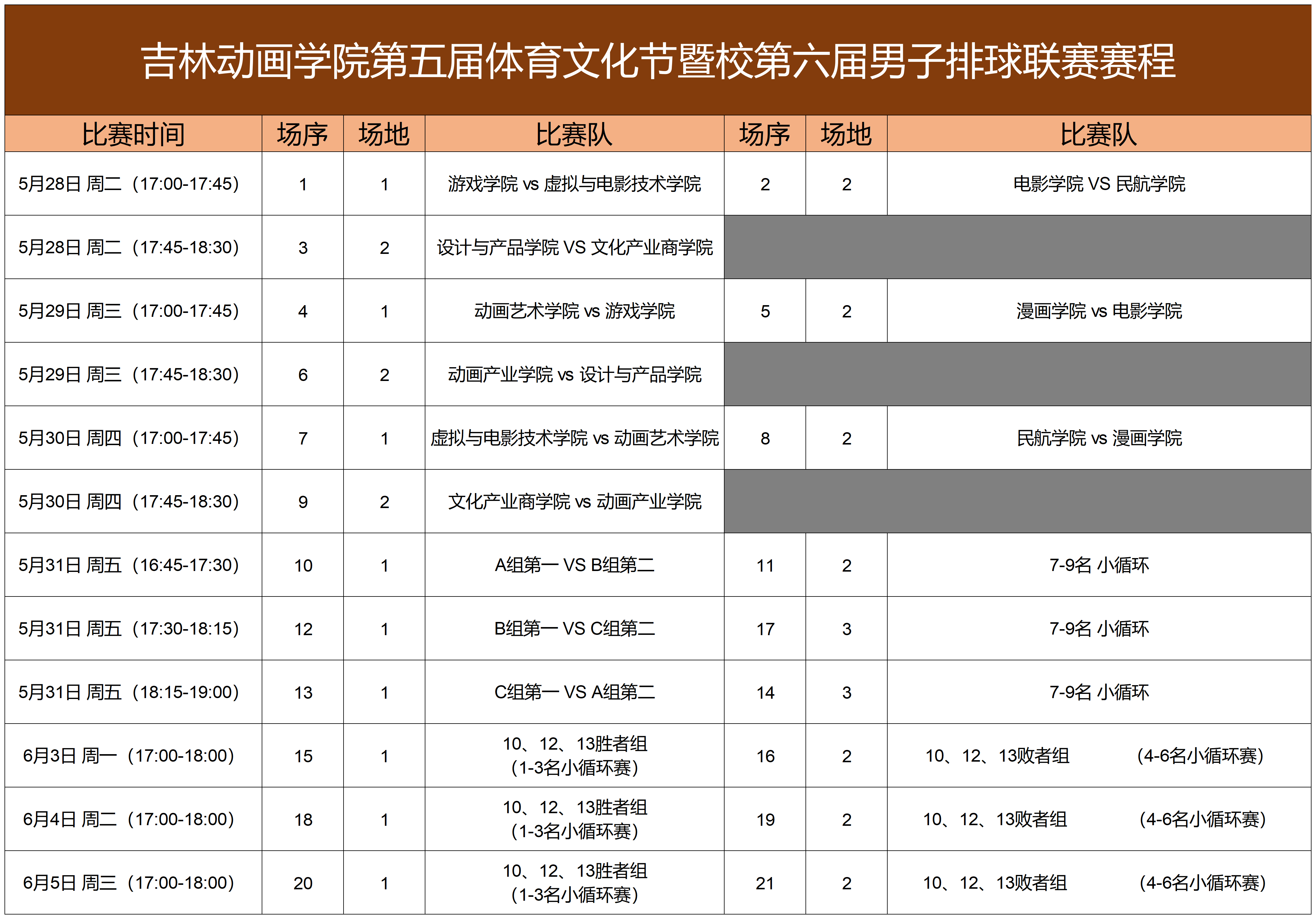 第五届春季体育节男子排球联赛赛程公示