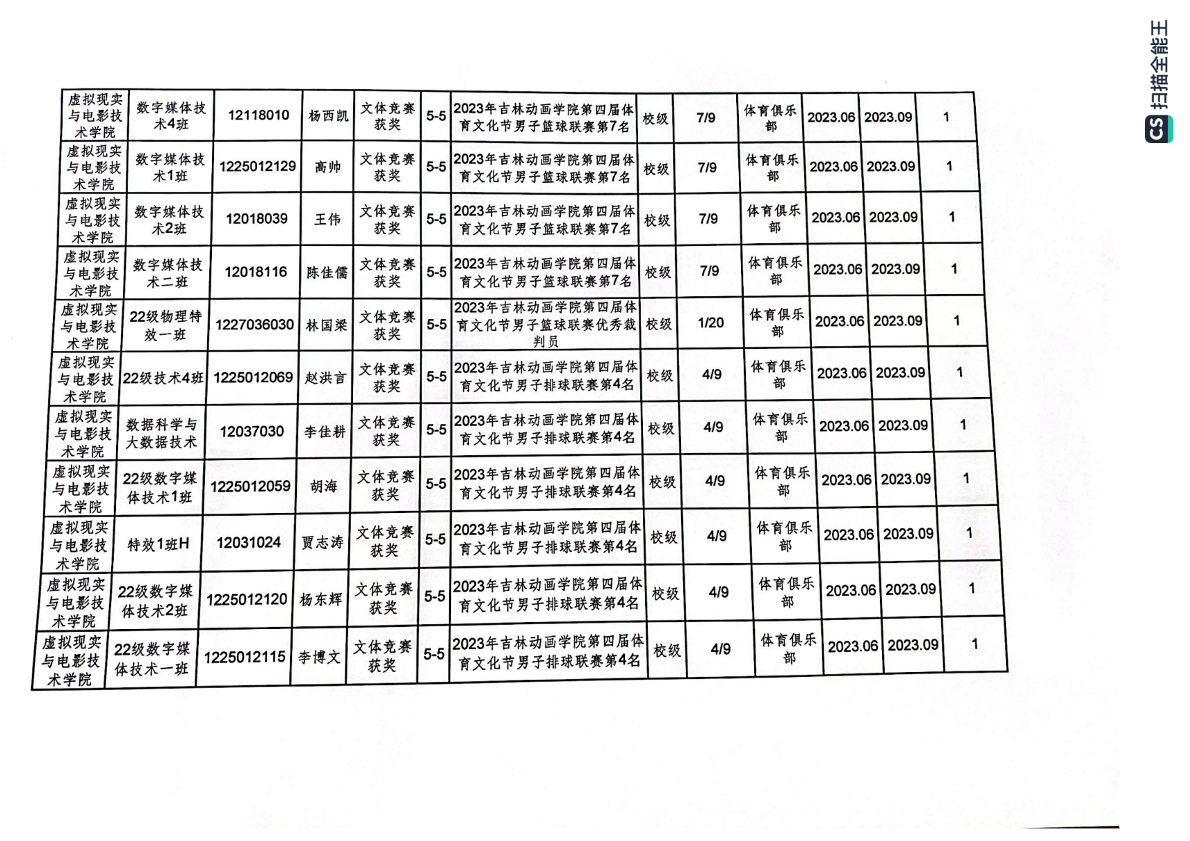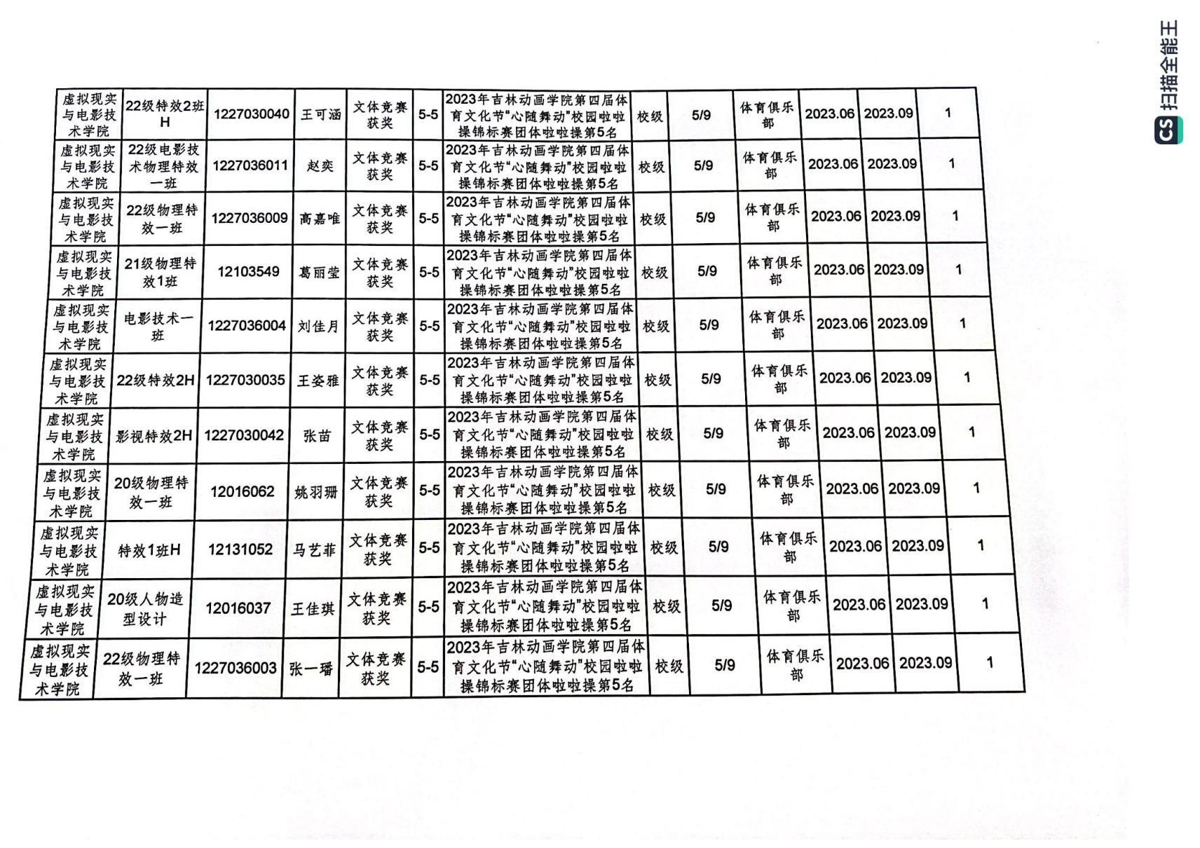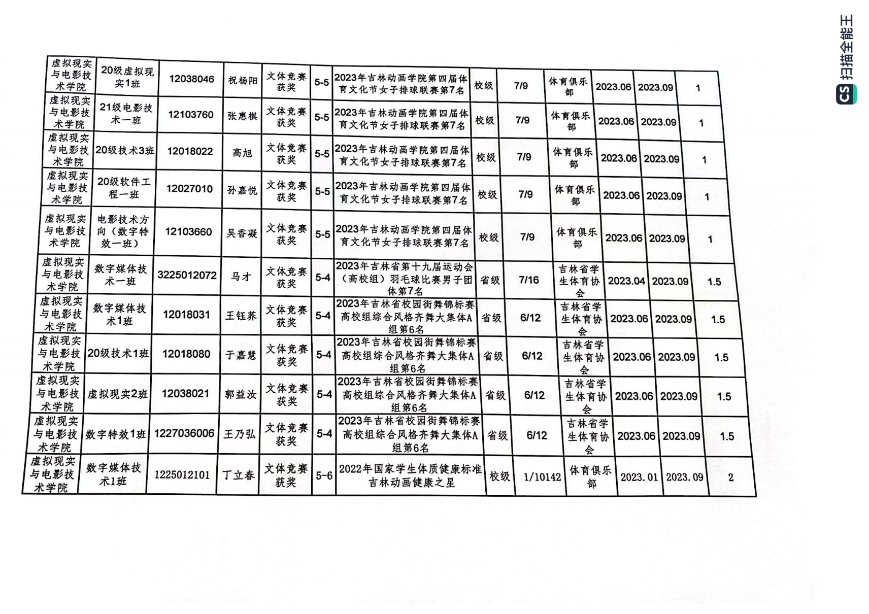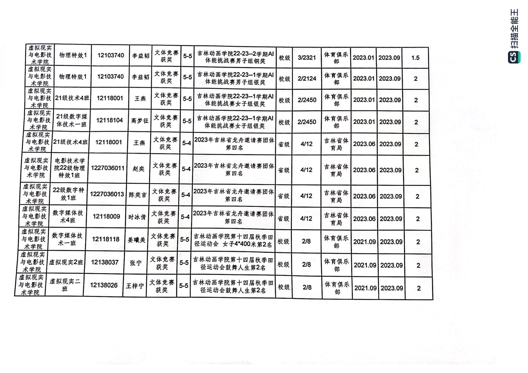 2023年虚拟现实与电影技术学院体育创新学分认定公示表