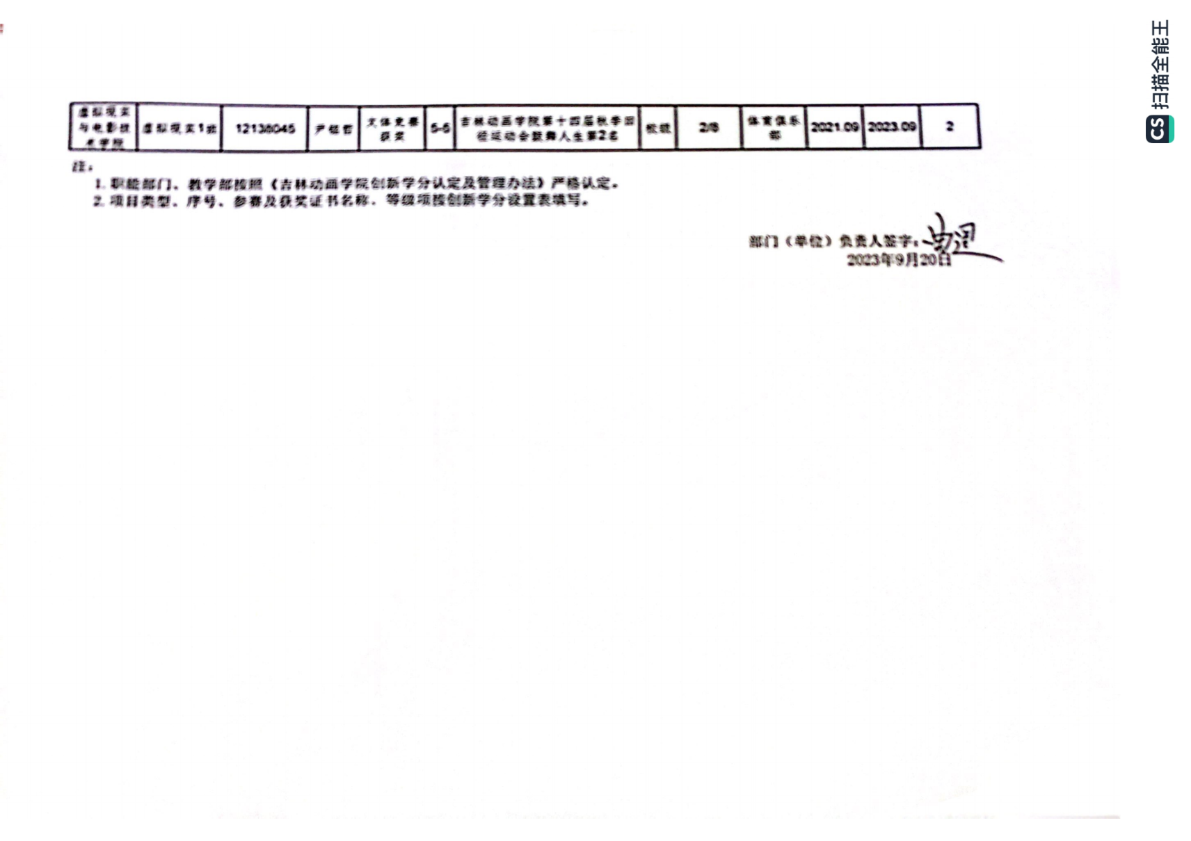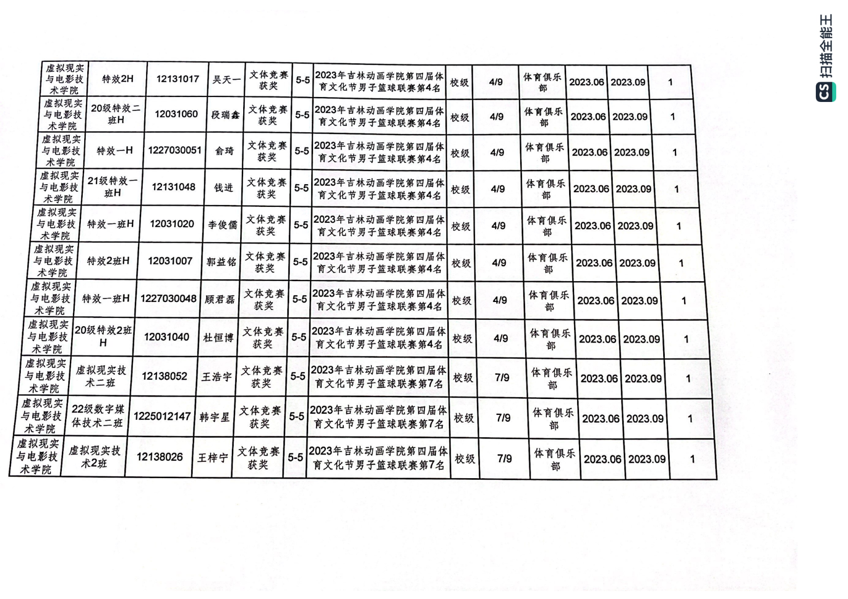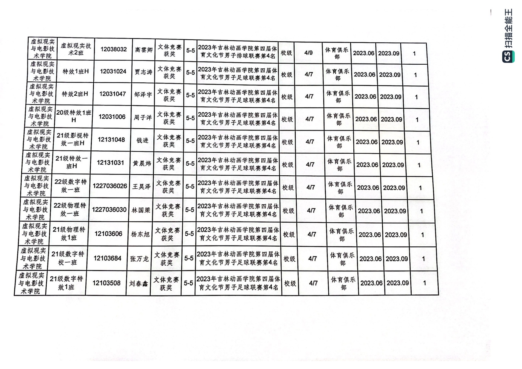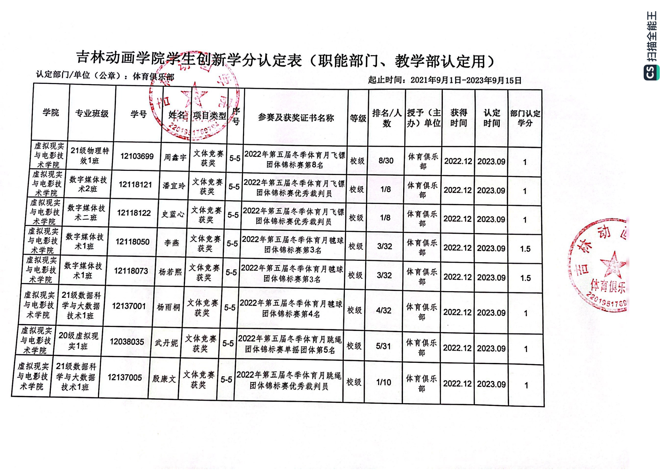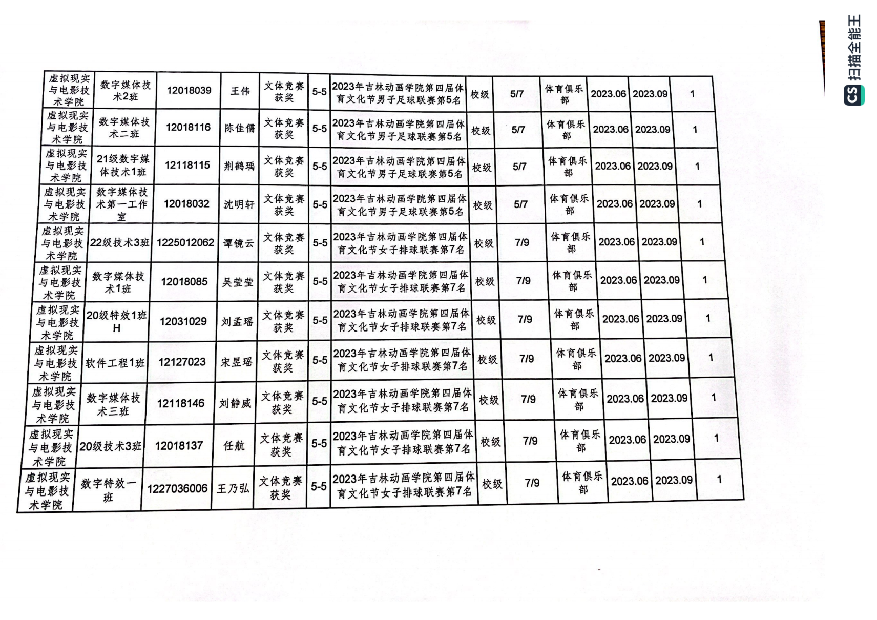 2023年虚拟现实与电影技术学院体育创新学分认定公示表