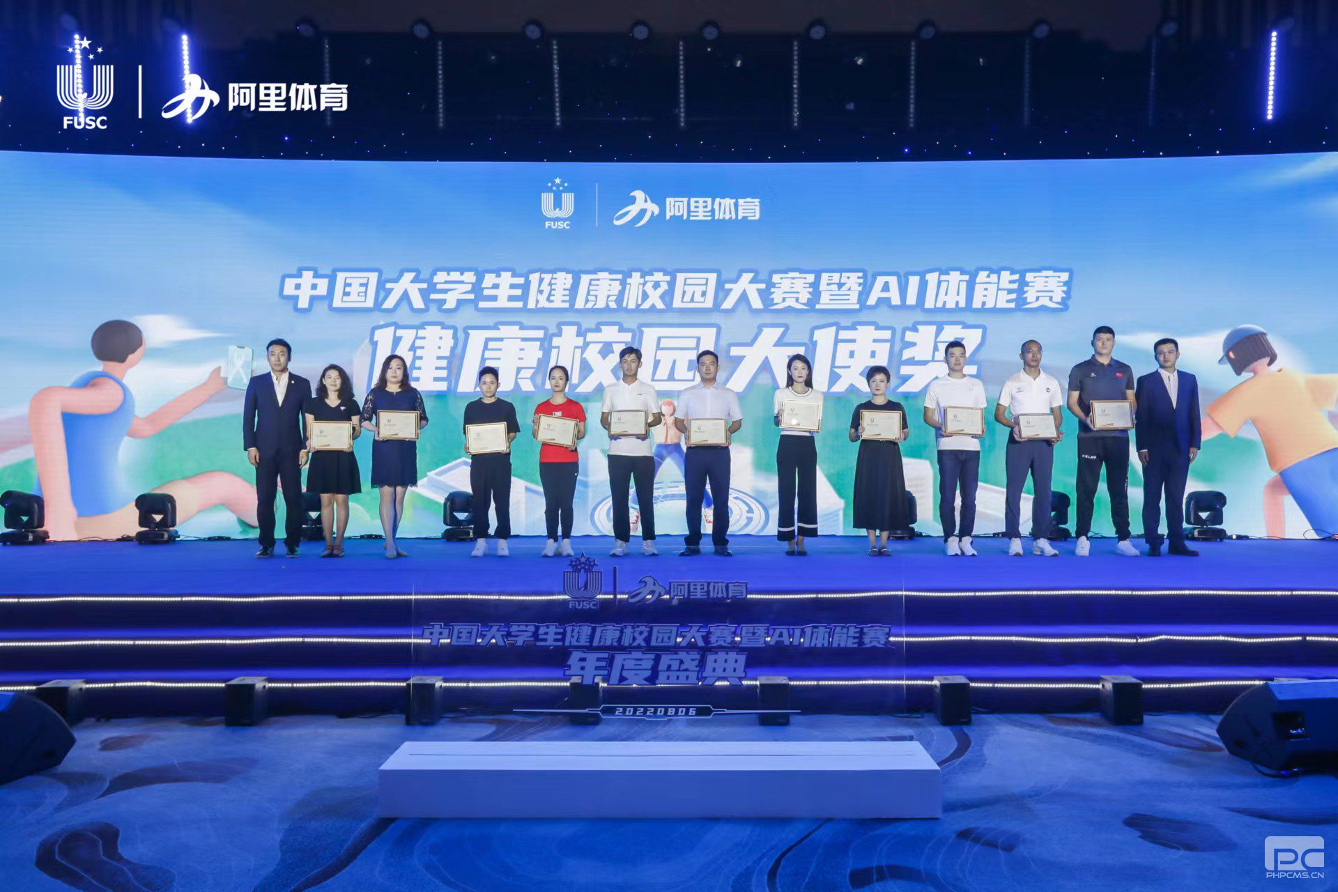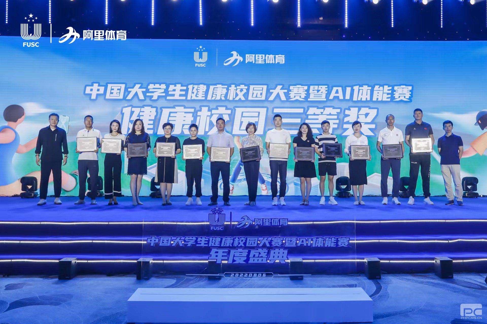 近日,中国大学生健康校园大赛暨AI体能赛年度盛典在重庆举行。来自20个省(自治区、直辖市)超过50所高校的师生齐聚一堂,见证这属于中国大学生最大规模线上赛事的年度盛典。大赛历时6个月,共有来自全国30个省区市的351所高校逾45万在校生参加。经组委会综合评定,共有44所高校达到认证标准,入选获奖名单。我校荣获健康校园三等奖,体育俱乐部曲罡老师应邀出席颁奖典礼。